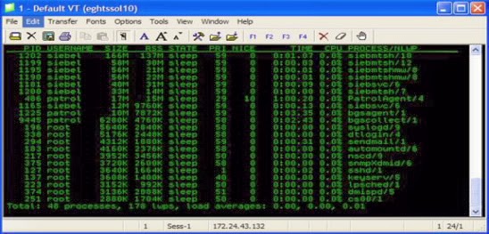 1.     Rapid Object Manager Memory Leak:  The graph below shows a rapid Object Manager memory leak. From the graph, you can see that all of the data is for process id (PID) 11940. To get an appreciation of the memory growth you must review the TIME and VSZ columns. VSZ is the total size of the process in virtual memory. The siebmtshmw process starts up and grows to around 200 MB at which point memory growth rises sharply as the process’s memory usage increases to almost 2 GB in size.